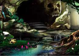Find the eyes for the skeleton and make it to escape from a magician.