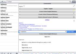 Diccionario Oxford Advanced Learner ********************************************** ******** CONTENIDOS PRINCIPALES: El Diccionario Oxford Advanced Learner o OALD, es recomendado por los profesores y los estudiantes, ya que definen las palabras en el lenguaje los estudiantes a entender, da ejemplos de frases útiles, e incluye la ayuda los alumnos necesitan para ampliar su vocabulario 7500 + palabras. Ha vendido más de 35 millones de copias en todo el mundo y es el diccionario para estudiantes avanzados de mayor venta en el mundo * PIELES Y FUNCIONES:. ************************** ******************************** + Un montón de fuera de línea / diccionarios en línea disponibles para más de instalación + alta calidad de la base de datos / sonidos + Desconectado (necesita Internet para algunas funciones avanzadas) + Ser capaz de instalar más diccionarios sin conexión de Internet + Rápido y preciso + Mirando hacia arriba todos los diccionarios a la vez + diseño simplemente conveniente, muy diferente a los demás + historia persistente y marcadores (búsquedas, compartibles ) + Segunda ventana para una rápida mirando Excelente característica "Palabra Sugerencia" + + Online / Offline Diccionario Reordenamiento / Add / Remove + Tamaño de fuente ajustable + Lista búsquedas Historia / Bookmark *************** ******************************************** más diccionarios: + Más gratuita diccionarios disponibles para su descarga + Picture dictionary Diccionario Urbano + + El diccionario gratuito + Wikcionario ...