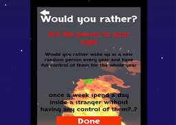 Camping Party Games es nuestra primera aplicación grupal que está diseñada para jugar en una fiesta o reunión y seguramente te hará reír. El juego está completamente abierto para que usted se convierta en un juego social para beber, o un juego de fiesta familiar competitivo.