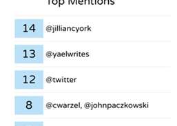 वे शब्द जिनका खाता सबसे अधिक उपयोग करता है, सबसे सामान्य स्थान और सबसे अधिक उल्लिखित खाते परिणामों में सूचीबद्ध होते हैं।