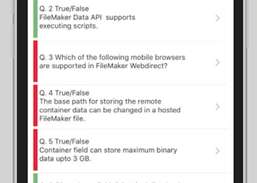La nostra ultima versione ti offre la possibilità di prepararti per la certificazione FileMaker 17 o FileMaker 16. E se hai acquistato la versione di FileMaker Pro 16, ottieni FM Quizillaa per FileMaker 17 a un prezzo speciale. (Attenzione: se hai eliminato l'app dal tuo dispositivo, ripristina prima l'acquisto di FM Quizillaa per FileMaker Pro 16. Quindi esegui l'aggiornamento alla versione più recente per usufruire del prezzo speciale)