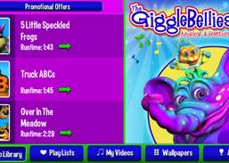 Scarica questa interfaccia gratuita per acquistare i tuoi video GiggleBellies preferiti (fascia di prezzo da $ 0,99 a $ 1,99 ciascuno). Scegli tra musica pluripremiata ...