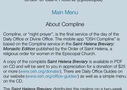 De mobiele app, OSH Compline, gebruikt inclusieve taal en is gebaseerd op de service van Compline in het Sint-Helenabrevier: Monastic Edition