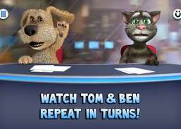 Talking Tom andamp; Ben News adiciona um novo capítulo à saga do Talking Tom, com todos os tipos de novos truques e recursos para mantê-lo entretido. Neste programa, Tom e seu amigo Ben se unem para apresentar tudo o que você diz como notícia, ao mesmo tempo que travam uma travessura um contra o outro.