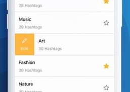 O aplicativo vem pré-carregado com um conjunto de hashtags para categorias populares. Qualquer número de categorias personalizadas pode ser criado para gerenciar hashtags facilmente.