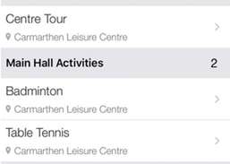 FRITIDSCENTER (för att se appen på walesiska lägg till ditt fritidscenter med dess walesiska namn, enligt nedan)