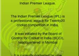 IPL.The IPL Hindistan'da Twenty20 kriket rekabet için profesyonel bir lig olduğunu. Hindistan'da Kriket (BCC için Denetim Kurulu tarafından başlatılan ...